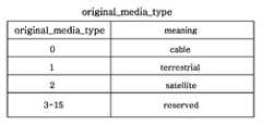 도 6은 본 발명의 데이터 구조에서 'original_media_type'이 정의하는 방송매체를 예로 들어 보인 도면.6 is a diagram illustrating a broadcast medium defined by 'original_media_type' in the data structure of the present invention as an example.