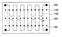 상기 제 8 실시예에 따른 필라멘트 배열 구조는 기판(110) 상부에 위치하는 샤워 헤드(130)의 상, 하부 양 말단에 각각 하나씩 형성되는 전극(160), 상기 전극(160) 내부에 일정 간격으로 일렬로 형성되는 복수개의 가스 노즐(140) 및 상기 상, 하부의 전극(160)을 연결시키며 가스 노즐(140)을 따라 요철 모양으로 형성되는 필라멘트(150)가 대칭으로 반복되는 구조로 형성된다.The filament array structure according to the eighth embodiment includes