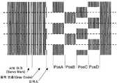 디스크상의 위치 신호(서보 신호)는 디스크 장치 스스로 기록하는 STW(서보·트랙·라이트) 방법과, 외부의 STW 장치에 의해 기록하는 방법이 있다. 자기 스스로 기록하는 STW 방법에는, 푸시핀 STW, 셀프·서보·라이팅, 재기록 STW 등이 있다. 외부의 STW 장치에 의해 기록하는 방법에는, 디스크 유닛에 기록하는 방법, 자기 전사, 디스크리트 미디어(discrete media) 등이 있다.The position signal (servo signal) on a disk is recorded by the STW (Servo Track Write) method of recording by the disk apparatus itself, and the method of recording by an external STW apparatus. Examples of STW methods for recording themselves include push pin STWs, self-servo writing, rewriting STWs, and the like. As a method of recording by an external STW apparatus, there is a method of recording on a disk unit, magnetic transfer, discrete media, and the like.