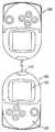 두 개의 수동 제어기(20)들은 각각 슬롯(7A, 7B)들에 결합될 수 있고, 예를 들어, 두 명의 이용자 또는 게임 플레이어가 경쟁 게임을 할 수 있도록 한다.  또한, 본 발명의 실시예에 따라 터미널 또는 종래에 이용된 메모리 카드가 슬롯(7A, 7B)들에 삽입될 수 있다.  두 개의 슬롯(7A, 7B)들이 도 1에 도시되지만, 오락 장치(1)는 두 개의 슬롯들을 초과 또는 미만하여 가질 수 있다.Two