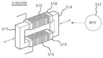 가변 인덕터(510, 520)는 제1 및 제2 마그네틱 코어(511, 514)의 상대적 위치를 가변 시켜 제1 및 제2 권선 코일(512, 515)에 의한 인덕턴스를 가변 시키기 위한 구동 수단(517)을 구비한다.  구동 수단(517)은 예를 들어, 전기 모터로 구성될 수 있다.  구동 수단(517)은 제어부(700)의 제1 제어 신호(701)에 의해서 제어된다.