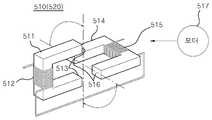 다른 예로, 도 4b에 도시된 바와 같이, 제1 및 제2 마그네틱 코어(511, 514)는 구동 수단(517)에 의해서 자속 입출력 부분(513, 516)이 상호 일치하거나 엇갈리거나 역방향을 갖도록 회전된다.  이 경우, 회전하는 각도에 따라 가변 인덕터(510, 520)의 인덕턴스가 가변된다.As another example, as shown in FIG. 4B, the first and second