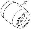 또한, 흡진추(17)의 구성을 도 12A∼12D에 도시한다.  흡진추(17)에도, 용수철부재(13a 및 13b)의 팔(131 또는 132)을 걸어서 회전을 저지하기 위한 걸림부(29 및 30)가 형성되어 있다.  이와 같이 세 개의 용수철 부재(13a, 13b 및 13c)의 각 팔(131 및 132)을, 각각 용수철 수용부재(26) 및 흡진추(17)의 각 걸림부(28, 29 및 30)로 회전정지를 고정함으로써, 제1 가동자(36)를 화살표 L로 표시하는 바와  같이, 샤프트(3)의 축방향으로 왕복 직선구동이 가능한 상태로 지지함과 아울러, 화살표 R로 표시하는 바와 같이, 제2 가동자(6)를 샤프트(3)의 축주위로 소정 범위내에서 왕복 회전이 가능한 상태로 지지한다.  흡진추(17)의 중심위치는 제2 가동자(6)의 회전축과 같은 축상에 배치되어 있으므로, 제2 가동자(6)가 샤프트(3)의 축주위로 회전될 때에, 제2 가동자(6)와 흡진추(17)가 샤프트(3)의 축주위로 각각 반대위상으로 회전구동된다.In addition, the structure of the