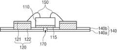 그리고, 상기 제1 금속 박막(140a) 상에 제2 금속 박막(140b)이 형성되어 있으며, 이 또한, 상기 회로 패턴(120)을 이루는 도전막(121)과 절연되도록 형성되어 있다.In addition, a second metal