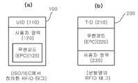 도 2는 ISO/IEC에서 정의한 무선 인식(RFID) 태그 및 본 발명의 일실시 예에 따른 RFID 태그에 대한 구성도들이다. 특히 도 2(a)는 ISO/IEC에서 정의한 RFID 태그의 구성예를 도시하고, 도 2(b)는 본 발명의 일실시 예에 따른 RFID 태그의 구성예를 도시한다.2 is a block diagram illustrating a radio frequency identification tag defined in ISO / IEC and an RFID tag according to an embodiment of the present invention. In particular, Figure 2 (a) shows a configuration example of the RFID tag defined in the ISO / IEC, Figure 2 (b) shows a configuration example of the RFID tag according to an embodiment of the present invention.