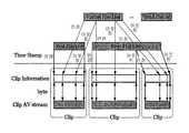 생성수단에 의해 생성된 어드레스 정보에 포함되는 제 1 AV 스트림의 소스 패킷의 어라이벌 타임 스탬프와, 제 3 AV 스트림의 최초에 위치하는 소스 패킷의 어라이벌 타임 스탬프가 연속되어 있고 또한 생성수단에 의해 생성된 어드레스 정보에 포함되는 제 2 AV 스트림의 소스 패킷의 어라이벌 타임 스탬프와 제 3 AV 스트림의 최후에 위치하는 소스 패킷의 어라이벌 타임 스탬프는 연속하고 있도록 할 수 있다.The generation time stamp of the source packet of the first AV stream included in the address information generated by the generating means and the arrival time stamp of the source packet located first of the third AV stream are consecutive and are generated by the generating means. The arrival time stamp of the source packet of the second AV stream included in the generated address information and the arrival time stamp of the source packet located last of the third AV stream can be contiguous.