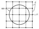 도 4b는 도 4a에 나타낸 한 세트의 태그와 넷페이지 펜의 형태로 넷페이지 감지 장치의 시야(field of view)간의 관계를 나타내는 평면도.FIG. 4B is a plan view showing the relationship between the set of tags shown in FIG. 4A and the field of view of the netpage sensing device in the form of a netpage pen; FIG.