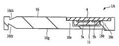 도 4의 (a)는 도 1의 반도체 장치의 길이 방향에서의 보조 기구 장착부의 주요부 확대 단면도.FIG. 4A is an enlarged cross-sectional view of an essential part of an auxiliary mechanism mounting unit in the longitudinal direction of the semiconductor device of FIG. 1.