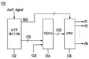 카운터부(154)는 복수의 p(단, p는 양의 정수)비트 카운터를 포함한다.  각  카운터는 카운터 시작신호(CSS)에 의해 개시되어 입력되는 클럭신호(CLK)에 따라 서로 다른 주파수를 가지는 복수의 카운트 출력신호(COS)를 선택부(156)에 공급한다.The