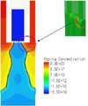 도 13를 참조하면, 통상적인 핀 전계효과 트랜지스터에 대한 가상실험 결과 에서는, 소오스/드레인 영역과 핀 상부의 게이트 전극이 오버랩(overlap)되는 농도가 높은 영역에 BTBT(Band to Band tunneling)가 심각하게 유발되고 이로 인해 GIDL이 유발된 것을 확인 할 수 있다. 도 13에서 농도와 BTBT 생성율(Generation Rate)이 가장 높은 영역은 빨간색이고 가장 낮은 부분은 파란색이다.Referring to FIG. 13, in a virtual test result of a conventional fin field effect transistor, band to band tunneling (BTBT) is severely in a region where the source / drain region and the gate electrode on the upper fin are overlapped with each other. It can be confirmed that this caused the GIDL. In FIG. 13, the region having the highest concentration and BTBT generation rate is red, and the lowest portion is blue.