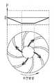 그리고, 도 4b에 도시된 바와 같이, 우측으로 휘어진 나선형 그루브를 가지는 동체를 반시계방향으로 회전하는 경우, 가운데 부분의 공기가 그루브를 따라 외부로 흐른후 외부에서 상승하는 공기압 분포(P)를 가지게 됨으로써 가운데 부분은 진공 상태가 되어 하강하는 동압이 발생하고 동체 외부에서는 상승하는 동압이 발생하게 된다.And, as shown in Figure 4b, when rotating the body having a helical groove bent to the right counterclockwise, to have an air pressure distribution (P) rising from the outside after the air in the middle portion flows out along the groove As a result, the central portion is in a vacuum state, and a falling dynamic pressure is generated, and a rising dynamic pressure is generated outside the body.