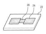 도2d에서, 연마 가공에 의해 동박에 비해 위로 돌출된 부분의 저항 페이스트를 제거하여 저항 페이스트(26)가 다른 동박과 정확히 같은 높이가 되도록 한다.   이와 같이 연마 가공된 상태의 동박층(22)의 사시도가 도3c에 도시되어 있다.In Fig. 2D, the resist paste of the portion protruding upward relative to the copper foil is removed by polishing so that the resist