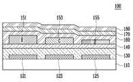 또한 적색(R) 화소 및 녹색(G) 화소에는 보조 정공수송층(미도시)이 형성되어, 상기 적색(R) 화소 및 녹색(G) 화소의 색광 효율 및 색순도를 향상시킨다.In addition, an auxiliary hole transport layer (not shown) is formed in the red (R) pixel and the green (G) pixel to improve color light efficiency and color purity of the red (R) pixel and the green (G) pixel.