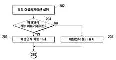전술한 바와 같이 본 발명의 제어 방법은 패턴인식 실행키의 입력 단계(210)가 생략될 수 있다. 그 경우, 실행 중인 어플리케이션의 패턴인식 가능 여부를 판단하고 표시하는 단계들(204, 206, 208)은 영상획득 단계(도 3의 220) 직전에 수행된다.As described above, in the control method of the present invention, the