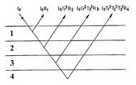 I = I0R1 + I0T12R2 + I0T12T22R3 + I0T12T22T32R4...I = I0 R1 + I0 T12 R2 + I0 T12 T22 R3 + I0 T12 T22 T32 R4 ...