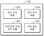 문서검색서버(1103)는 엔티티의 검색이 가능한 XML 문서에 대한 검색을 별도로 수행하는 경우에만 필요한 구성요소이며, 이 경우에도 반드시 서버(1102)와 분리될 필요는 없다.The