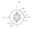 상기 제1 도파로(510)는 상기 제2 도파로(542)의 둘레를 둘러싸며, 상기 제 광을 제2 면(510b)에 위치된 확산 패턴(511)에서 제1 면 측으로 균일한 세기로 출력될 수 있도록 반사시킨다. 상기 제2 도파로(542)는 측면에 상기 제2 광원들(522a,522b)이 위치되며, 상기 제2 광을 확산 패턴(543)에서 균일한 세기로 확산시킨 후 대상 신체 부위로 출력한다. 상기 제2 도파로(542)의 중심에는 상기 광검출기(530)가 수광면이 노출되게 삽입되며, 상기 광검출기(530)의 둘레에는 차단층(541)이 삽입된다.The