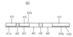 상기 도파로(410)는 그 중심부에 상기 광검출기(430) 및 상기 광검출기(430)를 둘러싸는 차단층(440)이 삽입되며, 상기 제2 면(410b)에는 상기 제1 및 제2 면 (410a,410b) 사이의 측면에 위치된 광원에서 생성된 광을 균일한 세기로 대상 신체 부위로 반사시키기 위한 확산 패턴들(411a,411b,412)이 형성된다.The