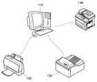 도 1은 본 발명에 의한 화상형성장치를 설명하기 위한 참고도로서, 호스트 디바이스(110)(host device : 이하 '호스트'라 명명함) 및 주변기기(120 내지 140)를 포함한다. 여기서, 주변기기(120 내지 140)는 인쇄장치 A (120), 인쇄장치 B  (130) 및 인쇄장치 C (140)를 포함한다.1 is a reference diagram for describing an image forming apparatus according to an exemplary embodiment of the present invention, and includes a host device 110 (hereinafter, referred to as a host) and