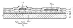 이 경우,  박막 트랜지스터의 활성층(12)이 하므로, 기판(10)의 방향으로 발광이 이루어지는 배면 발광형에 적용하기에도 무방하다.In this case, since the