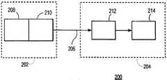 도 2는 MPEG-4 기반의 클라이언트-서버 시스템(200)의 블록도이다. 시스템(200)은 통신 채널(206)을 통해 클라이언트(204)에 접속된 서버(202)를 구비한다.  서버(202)는 소스 인코더(208) 및 채널 인코더(21)를 구비한다.  클라이언트(204)는 채널 디코더(204) 및 소스 디코더(204)를 구비한다.  상술된 바와 같이, MPEG-4는 스트리밍을 지원하도록 설계되었다.  다른 것들 중에서, MPEG-4는 VRML 97과의 많은 공통점을 갖는 장면을 위한 이진 디스크립션 형식(BIFS)을 정의하였다.  또한, MPEG-4는 장면들을 업데이팅 및 애니메이팅하는 두 개의 서버/클라이언트 프로토콜들, 즉 BIFS-Update BIFS-Anim을 정의한다.  스트리밍의 범위 내에서, VRML을 통한 MPEG-4의 장점들은 내장 스트리밍 능력을 지닐 뿐만 아니라 장면 디스크립션과 애니메이션 데이터도 코딩할 수 있다는 점이다.  소스 인코더(208)는 인코더(108)와 동종의 컨텐트 생성 툴이다.  채널 인코더(210)는 채널 인코더(110)와 다르다.  이것은 BIFS 및 BIFS-Anim 형식들로 비트 스트림을 생성한다.  이런 비트 스트림은 애니메이션 데이터뿐만 아니라 선수들과 운동장의 그래픽 모델들(축구 매치 애니메이션에서)을 포함한다.2 is a block diagram of an MPEG-4 based client-