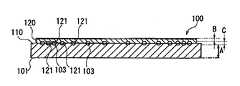 또한, 상기 실시 형태에서는, 제2 부재(200)에 형성된 오목부(121)에 의해 폐공간(103)이 형성되는 것에 대해서 설명하였지만, 본원 발명은 이에 한정되는 것은 아니다.  예를 들면, 상기 실시 형태와 같은 제1 부재(110)에 폐공간을 형성하기 위한 오목부를 형성하거나, 또한 제1 부재와 제2 부재와의 사이에 뚫린 구멍을 갖는 제3 부재를 개재시켜서 뚫린 구멍으로부터 폐공간을 형성하는 것도 본원 발명이 의도하는 범위 내이다.  또한, 도 9 또는 도 10에 도시한 바와 같이, 제1 부재(110) 및 제2 부재(120)의 쌍방에 폐공간(103)을 형성하기 위한 오목부(121)를 형성하는 것도 본원 발명이 의도하는 범위 내이다.  또, 이와 같이 제1 부재(110) 및 제2 부재(120)의 쌍방에 오목부(121)를 형성함에 있어서, 도 9에 도시한 바와 같이 제1 부재(110)의 복수의 오목부(121)가 제2 부재(120)의 복수의 오목부(121)와 대응하는 위치에 형성되고, 제1 부재(110)의 하나의 오목부(121)와 제2 부재(120)의 하나의 오목부(121)에 의해 하나의 폐공간(103)이 형성되도록 할 수도 있다.  또한, 제1 부재(110) 및 제2 부재(120)의 쌍방에 오목부(121)를 형성함에  있어서, 도 10에 도시한 바와 같이 제1 부재(110)의 복수의 오목부(121)를 제2 부재(120)의 복수의 오목부(121)와 대응하는 위치에 형성하지 않고, 제1 부재(110)의 복수의 오목부(121) 중, 제2 부재(120)의 표면과에 의해 폐공간(103)을 형성하는 오목부(121)가 존재하거나, 또한 제2 부재(121)의 복수의 오목부(121) 중, 제1 부재(110)의 이면과에 의해 폐공간(103)을 형성하는 오목부(121)가 존재하도록 설계 변경할 수도 있다.In addition, although the said embodiment demonstrated that the