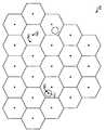 도 3 은 중계기를 일부 포함하는 다수의 (육각형) 셀을 포함하는 네트워크를 나타내는 도면이다.3 is a diagram illustrating a network comprising a plurality of (hexagonal) cells, some of which include repeaters.