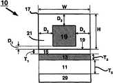 17 : 연성 강자성체 기준층19 : 판독 기입 도전체17: flexible ferromagnetic reference layer 19: read-write conductor