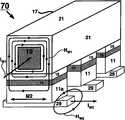 도 12에서, 메모리(70)는 본 발명의 다수의 자기 메모리 셀(10)에 의해 형성된다.  각각의 자기 메모리 셀(10)은 공통 연성 강자성체 기준층(17)과 접촉하는 각각의 캡층(15)(캡층(15)은 선택 사양임)을 구비하고, 각각의 강자성체 데이터층(11)은 강자성체 데이터층(11)을 가로지르는 제 1 도전체(29)와 전기적으로 통신한다.In FIG. 12,