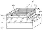 또한, 복수의 홈영역(H)에 의해 상기 반도체 발광구조물은 폭(b)보다 큰 길이(a)를 갖는 복수의 광가이드부(G)를 구비한다. 바람직하게는, 도3에 도시된 구조에서, 제1 및 제2 전극(49a,49b) 사이의 활성층(46)이 단절되지 않도록 복수의 홈영역(G)은 상기 제2 전극(49b)의 인접한 위치에서 상기 제1 전극(49a)을 향해 연장되어 형성된다. 앞서 설명한 바와 같이, 복수의 광가이드부(G)와 홈영역(H)이 교차하여 배열된 영역은 특정편광성분이 우세하게 방출되는 포토닉 크리스탈 구조로서 작용할 수 있다.In addition, the semiconductor light emitting structure includes a plurality of light guide portions G having a length a larger than the width b by the plurality of groove regions H. Preferably, in the structure shown in FIG. 3, the plurality of groove regions G are adjacent to the