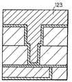 다음에, 도 7b에 도시하는 바와 같이, 반송장치(83)에 의해 전해 도금 챔버(11)의 홀더(12) 상에 기판(91)(도시 생략)을 반송한다.  그 때, 챔버 내를 비산화성 분위기로 하는 것이 바람직하다.  이 전해 도금 챔버(11)에서 구리 전해 도금을 행함으로써, 홈(116) 및 접속 구멍(117)을 구리로 이루어지는 도전층(123)에서 매입한다.  그 때, 제 3 절연막(115) 상의 배리어층(121) 상에도 구리로 이루어지는 도전층(123)이 퇴적된다.  또한, 도면에서는 구리 시드층(122)도 도전층(123)에 포함하여 그리고 있다.  이 전해 도금 공정의 시퀀스에서는 도금 후의 도전층(123) 표면이 평탄화되도록 도금 조건을 선택하여, 표면이 평탄한 구리 도금층을 형성한다.  그 후, 전해 도금 챔버(11) 내에서 기판(91)을 세정한다.  이 세정은 예를 들면 수세에 의해 행한다.Next, as shown to FIG. 7B, the board | substrate 91 (not shown) is conveyed on the