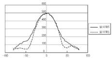 도 11은 참고예 5 및 6에 따른 광대역 반사형 고휘도 편광판의 시야각 특성을 나타낸 그래프이다. 도 11에 나타난 바와 같이, 광분산 필름을 적층한 참고예 6의 광대역 반사형 고휘도 편광판의 시야각 특성이 광분산 필름을 적층하지 않은 참고예 5의 광대역 반사형 고휘도 편광판의 시야각 특성보다 더욱 우수함을 알 수 있다.FIG. 11 is a graph illustrating viewing angle characteristics of a broadband reflective high brightness polarizer according to Reference Examples 5 and 6. FIG. As shown in FIG. 11, it was found that the viewing angle characteristic of the broadband reflective high luminance polarizing plate of Reference Example 6 in which the light dispersion film was laminated was superior to the viewing angle characteristics of the broadband reflective high luminance polarizing plate of Reference Example 5 in which the light dispersion film was not laminated. Can be.