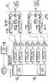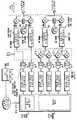 제 2 연산 증폭기(122)는 제 2 RF 채널 필터(도시 안됨)로부터 RF 신호를 수신한다. 상기 증폭기(122)의 출력은 혼합기들(124 및 126)에 접속되고, 상기 혼합기들의의 다른 입력들은 위상 스플리터(130)를 통해 제 2 RF 로컬 발진기(128)로부터 반대 신호들을 수신하도록 접속된다. (수신된 RF 신호로부터 상대적인 동상 및 직교 위상 정보를 전달할 수 있는) 혼합기들(124 및 126)의 출력들은 (하기에 보다 상세히 설명될) 중/협대역 증폭기/필터 장치들(132 및 134)에 각각 접속된다. 따라서, 소자들(122 내지 134)은 RF 경로(136)를 나타낸다고 생각할 수 있다.The second