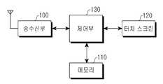 먼저 송수신부(100)는 이동 통신 단말기의 무선 통신 기능을 수행한다. 그리고 메모리(110)는 다수의 프로그램과 데이터를 저장하기 위한 롬(ROM: Read Only Memory) 및 램(RAM: Random Access Memory) 등으로 이루어지는데, 특히 본 발명의 실시 예에 따라 터치 스크린(120)에 표시된 메뉴바(Menu Bar)의 위치에 대응되는 모드(Mode)의 사용자 인터페이스(User Interface) 및 2개 이상으로 구분된 터치 스크린(120)의 각 영역에 대한 좌표값의 범위를 저장하고 있다.First, the