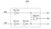그리고, 도 7의 디코더(230)에서, 인버터(IV111)와 인버터(IV112)로 구성된 버퍼는 비교신호(A0)를 버퍼링하여 하이레벨의 제어신호(L1)를 출력하고, 인버터(IV110)는 비교신호(B0)를 반전버퍼링하여 로우레벨의 제어신호(S1)를 출력한다. 그리고, 낸드게이트(ND101)는 제어신호(L1)와 제어신호(S1)를 부정논리곱연산하여 하이레벨의 제어신호(M1)를 출력한다.In the