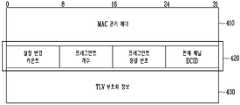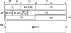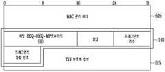 MAC 헤더는 프레임의 종류 및 확장 헤더의 존재를 나타내는 프레임 제어 필드(311, Frame Control: FC), 확장헤더(Extended Header, EHDR)의 길이를 나타내는 MAC 파라미터 필드(312, MAC Parameter: MAC_PARM), 프레임의 전체 길이를 나타내는 길이 필드(313, Length: LEN), MAC 헤더(310)의 오류 체크를 위한 헤더 체크 시퀀스 필드(314, Header Check Sequence: HCS) 및 패킷의 재정렬 정보 및 출력 우선 순위 정보로 구성되는 확장헤더(315, EHDR)를 포함한다. 상기 확장헤더(315, EHDR) 는 각각 4비트 길이를 갖는 확장헤더 타입(EH_Type) 및 길이(EH_LEN) 필드로 시작되고, 3 비트의 트래픽 우선 순위 필드(Traffic Priority), 1 비트의 순서-변경-카운터(Sequence Change Counter: SCC, 이하 SCC라 칭함) 필드, 20비트의 DSID 필드 및 16 비트의 PSN 필드를 포함한다.The MAC header is a