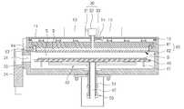 도시하지는 않았지만, 하부 챔버(20) 내의 바닥면 영역에는 증착공간(S)에 존재하는 공정 가스(gas)를 다시 증착공간(S)으로 확산시키는 가스확산판(미도시)이 마련되어 있다.Although not shown, a gas diffusion plate (not shown) is provided in the bottom region of the