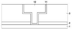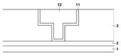 층간 절연막(3) 위에 형성된 베리어 금속막(11) 및 금속 박막(12)은 화학 기계적 연마 공정을 진행하여 평탄화한다.The