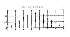 도 3은 본 발명에 따르는, 15개의 계수를 워핑된 필터 블록(16)의 단순한 버전으로 또는 구성 요소로써 포함하는 선형 페이즈 FIR 저역 통과 필터의 임펄스 응답을 도시한다.3 shows the impulse response of a linear phase FIR low pass filter comprising 15 coefficients as a component or as a simple version of