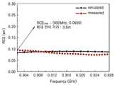 도 7의 그래프를 통해 알 수 있듯이, 도 2와 같은 인공자기도체를 이용한 다이폴 태그 안테나는 902 MHz의 주파수에서 최대 인식 거리 3.6m 의 성능을 가짐을 확인할 수 있다. 한편, 그래프 상 컴퓨터 시뮬레이션 값과 직접적으로 실험적으로 측정된 값이 거의 비슷하게 나오는 것을 확인할 수 있고, 안정적인 RCS 특성을 확인할 수 확인할 수 있다.As can be seen from the graph of FIG. 7, the dipole tag antenna using the artificial magnetic conductor as shown in FIG. 2 has a maximum recognition distance of 3.6 m at a frequency of 902 MHz. On the other hand, it can be seen that the computer simulation values and the experimentally measured values on the graph are almost similar, and the stable RCS characteristics can be confirmed.