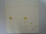 도 9는 본 발명에 따른 합성예 1에 있어서, 페로센카르복스알데히드 (1), 히푸릴-라이신 (2), 페로센카르복스알데히드를 소듐 보로하이드라이드로 환원시킨 것 (3) 및 페로센카르복스아미드-라이신-히푸르산 (4)에 대한 TLC 결과를 나타낸 사진이다.Figure 9 shows the synthesis of ferrocenecarboxaldehyde (1), hypofuryl-lysine (2), ferrocenecarboxaldehyde with sodium borohydride (3) and ferrocenecarboxamide in Synthesis Example 1 according to the present invention. TLC results for lysine-hypuric acid (4).