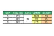 다음에 200초 동안 열 처리와 급속 냉각(Quench) 스플릿을 실시한다.The heat treatment and quench splits are then performed for 200 seconds.