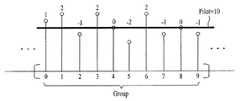 도 3 및 도 4는 본 발명의 PBC 코딩 방식을 설명하기 위해 도시한 예이다. 예를 들어, 하나의 그룹내에 복수의 파라미터 (예를 들어, 10개)가 존재하고, 각각의 파라미터는 다음과 같은 파라미터 값을 갖는다고 가정한다. x[n] = {11, 12, 9, 12, 10, 8, 12, 9, 10, 9}. 상기 그룹내 파라미터를 인코딩하기 위해 PBC 방식이 선택되었다면, 우선 파일럿 기준값을 선정하여야 한다. 도 4에 의하면 본 예의 파일럿 기준값은 '10'으로 선정되었음을 알 수 있다. 파일럿 기준값은 전술한 바와 같이 파일럿 기준값을 선정하는 다양한 방법을 통해 선정할 수 있다. 이하, PBC에 의한 차분 값들은 다음의 수학식 1을 통해 산출된다.3 and 4 illustrate examples of the PBC coding scheme of the present invention. For example, it is assumed that there are a plurality of parameters (eg, ten) in one group, and each parameter has a parameter value as follows. x [n] = {11, 12, 9, 12, 10, 8, 12, 9, 10, 9}. If the PBC scheme is selected to encode the parameters in the group, first the pilot reference value should be selected. Referring to FIG. 4, it can be seen that the pilot reference value of this example is selected as '10'. As described above, the pilot reference value may be selected through various methods of selecting a pilot reference value. Hereinafter, difference values by the PBC are calculated through