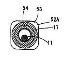 가동부재(11)는, 도전성 부재(예를 들면, 놋쇠나 인청동판에 18금 도금을 실시한 것, 또는 18금으로 이루어진 선상부재 등)로 이루어지고, 대략 원기둥형상을 구비하고 있다. 이 가동부재(11)는, 그 길이가 고정단자(12A)의 측벽(41B)으로부터 고정단자(12B)의 측벽(41B)까지의 거리보다 짧고, 고정단자(12A)의 측벽(41A)으로부터 고정단자(12B)의 측벽(41A)까지의 거리보다 길게 구성되어 있으며, 일단이 고정단자(12A)의 관통공(10)에 헐겁게 관통되어지고, 타단이 고정단자(12B)의 관통공 (10)에 헐겁게 관통되어 있다.The