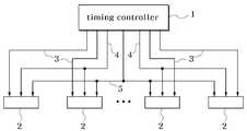 타이밍 제어부(100)로부터 각 데이터 구동부(200)로 송신 신호 및 송신 클록 신호를 전달하는 방식으로는 하나의 배선을 이용한 단일 신호 방식(single-ended signalling)이 사용될 수도 있으며, LVDS와 같이 2개의 배선을 이용한 차동 신호 방식(differential signalling)이 사용될 수 있다.As a method of transferring the transmission signal and the transmission clock signal from the