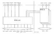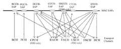 매체접속제어(Medium Access Control; 이하 MAC이라 약칭함)는 무선자원의 할당 및 재할당을 위한 MAC 파라미터의 재할당 서비스를 제공한다. 상위계층인 무선링크제어(RLC: Radio Link Control)계층과는 논리채널(Logical Channel)로 연결되어 있으며, 전송되는 정보의 종류에 따라 다양한 논리채널이 제공된다. 일반적으로 제어평면의 정보를 전송할 경우에는 제어채널(Control Channel)을 이용하고, 사용자 평면의 정보를 전송하는 경우는 트래픽 채널(Traffic Channel)을 사용한다. MAC은 관리하는 전송채널의 종류에 따라 MAC-b 부계층(Sublayer), MAC-d 부계층, MAC-c/sh 부계층으로 구분할 수 있다. MAC-b 부계층은 시스템 정보(System Information)의 방송을 담당하는 전송채널인 BCH(Broadcast Channel)의 관리를 담당한다. MAC-c/sh 부계층은 다른 단말들과 공유되는 FACH(FACH: Forward Access Channel)이나 DSCH (Downlink Shared Channel) 등의 공유전송채널을 관리한다. UTRAN에서 MAC-c/sh 부계층은 CRNC에 위치하고, 셀내의 모든 단말이 공유하는 채널들을 관리하므로 각 셀에 대해서 하나씩 존재한다. 그리고 각 단말에도 하나씩의 MAC-c/sh 부계층이 존재한다. MAC-d 부계층은 특정 단말에 대한 전용전송채널인 DCH(Dedicated Channel)의 관리를 담당한다. 따라서 UTRAN의 MAC-d 부계층은 해당 단말의 관리를 담당하는 SRNC에 위치해 있고, 각 단말에도 하나씩의 MAC-d 부계층이 존재한다.Medium Access Control (hereinafter referred to as MAC) provides a service for reassigning MAC parameters for allocating and reallocating radio resources. The upper layer is connected to a radio link control (RLC) layer by a logical channel, and various logical channels are provided according to the type of information to be transmitted. In general, a control channel is used for transmitting control plane information, and a traffic channel is used for transmitting user plane information. The MAC may be classified into a MAC-b sublayer, a MAC-d sublayer, and a MAC-c / sh sublayer according to the type of a transport channel managed. The MAC-b sublayer is responsible for managing a BCH (Broadcast Channel), which is a transport channel for broadcasting system information. The MAC-c / sh sublayer manages a shared transport channel such as a forward access channel (FACH) or a downlink shared channel (DSCH) shared with other terminals. In UTRAN, the MAC-c / sh sublayer is located in the CRNC and manages channels shared by all terminals in a cell, so that there is one for each cell. In addition, there is one MAC-c / sh sublayer in each terminal. The MAC-d sublayer is responsible for managing a dedicated channel (DCH), which is a dedicated transport channel for a specific terminal. Therefore, the MAC-d sublayer of the UTRAN is located in the SRNC that manages the corresponding terminal, and there is one MAC-d sublayer in each terminal.