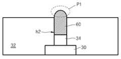 도 2를 참조하면, 제2 콘택홀(h2)의 일부에 하부전극 콘택층(34)이 채워져 있다. 제2 콘택홀(h2)의 나머지 부분은 상변화층(60)으로 채워져 있다. 상변화층(60)은 제1 실시예의 상변화층(38)과 동일한 것일 수 있다. 제2 층간 절연층(32) 상에 상변화층(38)의 노출면을 덮는 상부전극(62)이 존재한다. 상부전극(62)은 선택적 성장법으로 하부전극 콘택층(34) 상에서만 성장된 것으로 상기 제1 실시예의  상부전극(42)과 동일할 수 있다. 하부전극 콘택층(34)은 도전성 플러그(24)와 직접 연결되게 구비될 수 있다. 이 경우, 하부전극 콘택층(34)은 하부전극 역할을 한다. 한편, 하부전극 콘택층(34)을 하부전극(30)의 일부가 제2 콘택홀(h2)로 확장된 것으로 볼 수도 있다. 곧, 하부전극 콘택층(34)과 하부전극(30)을 합하여 상부전극(62)에 대응되는 하부전극으로 간주할 수도 있다.Referring to FIG. 2, the lower