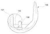 상기 고정돌기(150)는 상기 대퇴골 수용부(110)의 상측으로 대퇴골(1)에 내입되어 삽입될 수 있도록 형성되는 돌기로써 나사모양이나, 상기 대퇴골에 내입되어 견고히 상기 대퇴골의 골조직을 잡아줄 수 있는 형상의 걸림 등이 있으면 더욱 바람직할 것이다.The fixing