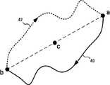 마찬가지로, 도 5와 같이, 상기 경로(40)를 상기 선분의 중심점(c)을 기준으로 점 대칭(line symmetry) 내지 회전 대칭 이동 시켜서 얻은 경로(42)를 따라 제2 지점(b)에서부터 이동하더라도 제1 지점(a)에 다다르게 된다.Similarly, as shown in FIG. 5, even if the