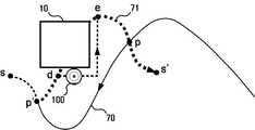 도 11 및 도 12는 본 발명의 제3 실시예에 따른 리로케이션 과정을 보여준다. 제3 실시예는 제1 및 제2 실시예와는 다른 방식으로 이동 로봇(100)이 최종 유효점(p)에 도달할 수도 있음을 보여준다. 리로케이션 부(170)는 이동 로봇(100)의 이동 경로(70)를 점 대칭 이동한 경로(71)의 최종점 즉, 엔코더에 의하여 계산된 위치(s)에 대응되는 점(s')은 정확히 알 수가 있다. 따라서, 리로케이션 부(170)는 먼저, 이동 로봇(100)이 최종 위치(p')로부터 상기 대응 점(s')을 향하여 직선 운동하도록 제어한다.11 and 12 show a relocation process according to a third embodiment of the present invention. The third embodiment shows that the